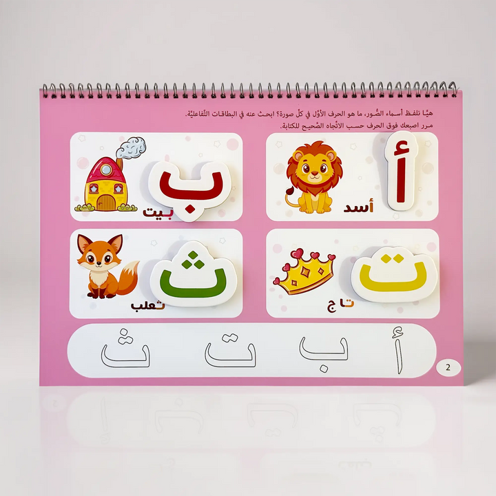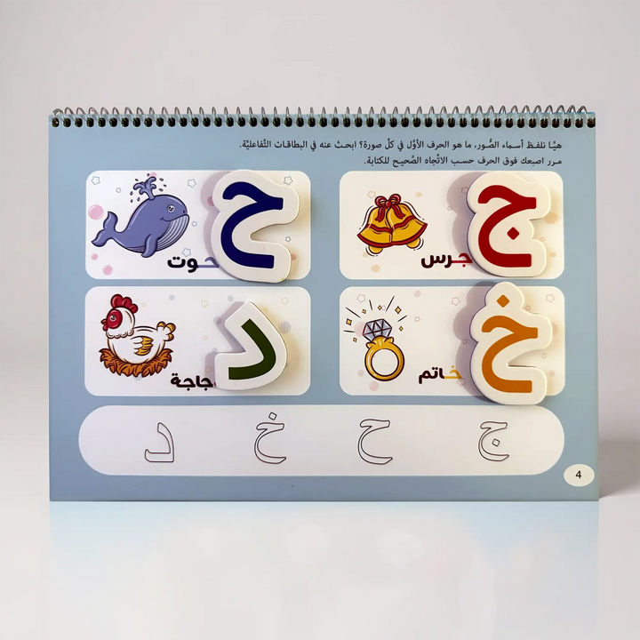 | الأنشطة | مطابقة الحروف، تتبّع الاتجاهات، تشكيل الحروف، تكوين الكلمات |
