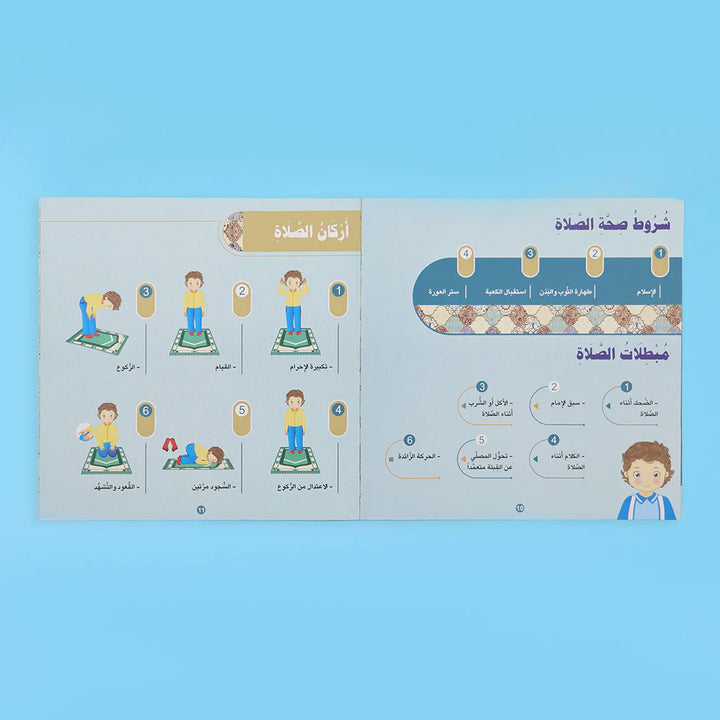 • شرح واضح لأركان الصلاة وشروط صحتها بطريقة تناسب فهم الطفل.