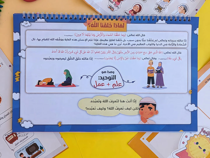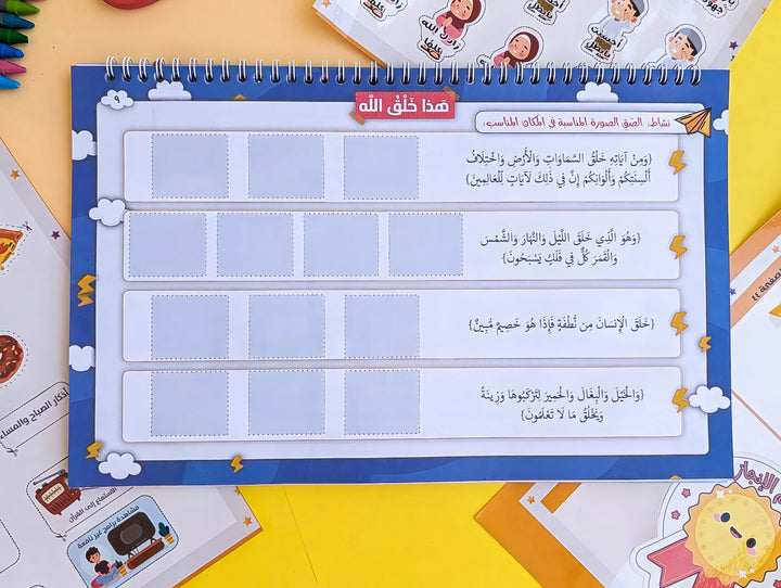 ☘️ مرفق مع الكتاب ثلاث صفحات من الستيكرز، بعضها يتم إستعمالها داخل أنشطة في الكتاب، وأخرى ستيكرز تحفيزية للطفل.